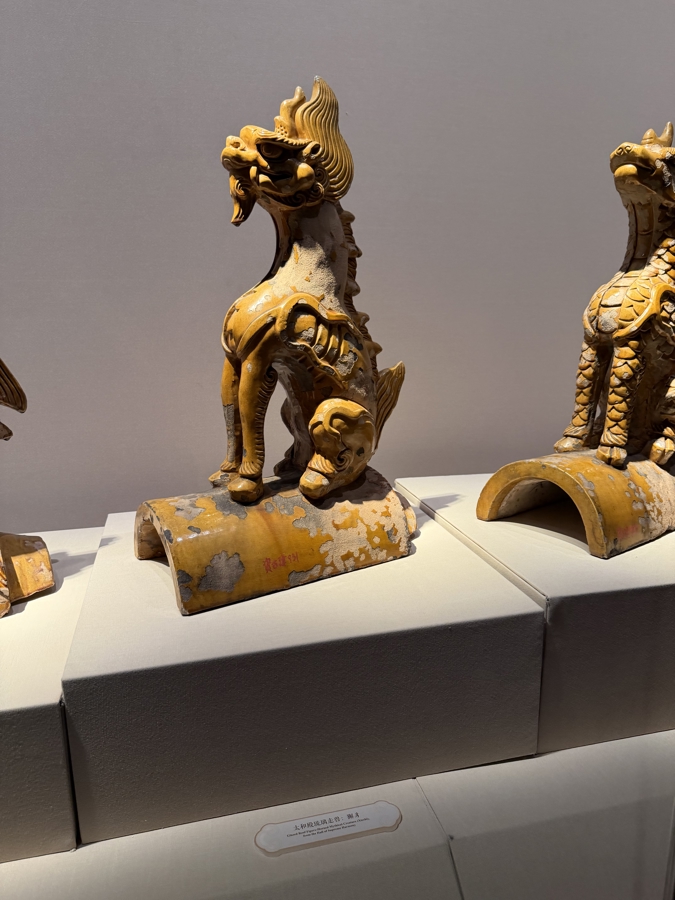 在“殿宇生辉”部分,展览突破了以往对建筑修缮的宏大叙事,关注太和殿的脊兽和宫殿内外檐的装修。观众可以近距离看到11个脊兽的真实大小,它们不仅是建筑的点睛之笔,也是深受大众,尤其是青少年喜爱的文化符号。同时,通过乐寿堂隔扇和通景画的展示,揭示了古建筑修缮涉及的十几道复杂工种,让观众明白故宫保护不仅是大修,更是对每一个细微构件的诚敬典守。