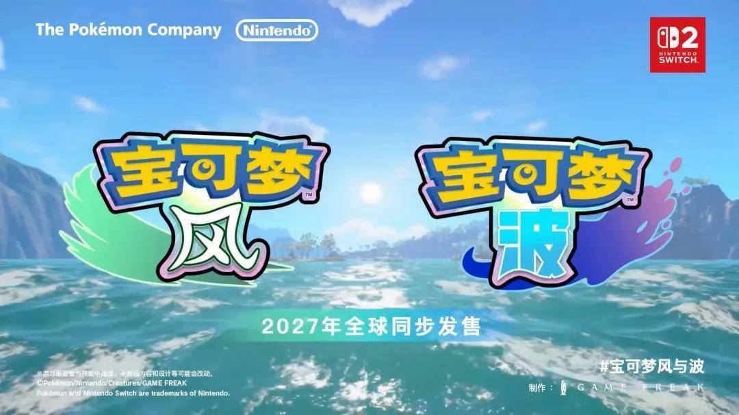 在当晚的线上发布会上,系列的第十世代正作《宝可梦 风与波》也正式公布,预定于2027年登录NS2平台。